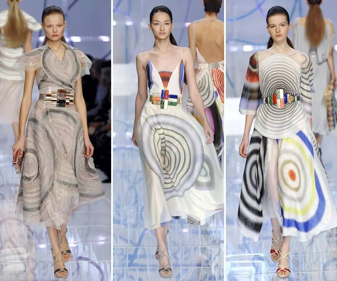 起初还是纯净飘然的素色衣裙,转眼间布满如同年轮一般的同心圆环~