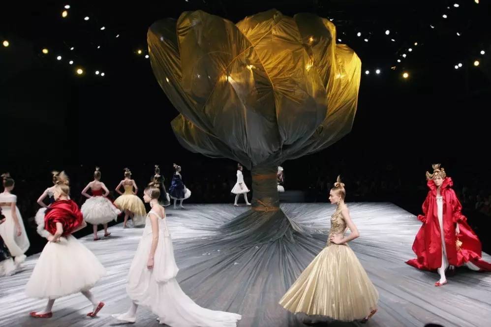 终场出现的印花纱质礼服裙除了绝妙演绎出五十年代的倾城梦幻外,也为日后品牌的高定系列构造出初框架基础。