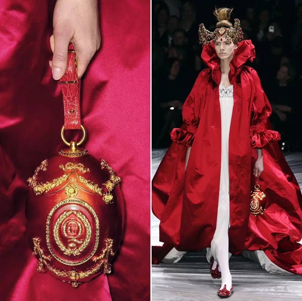 除了关于超自然的臆想,还有皇室贵族的角色转换~McQueen的作品里从来不会缺少宫廷感的设计,金线刺绣天鹅绒,个个都是英殖民地的傲娇皇族。