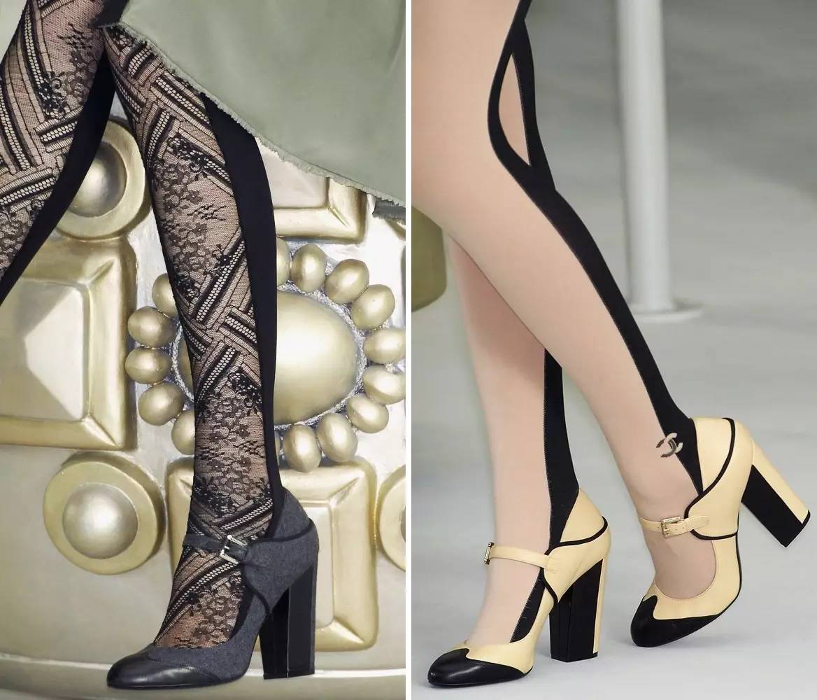 那一季的经典单品还有袜子,蕾丝工坊出品的钩花蕾丝袜以及满是心机的侧影瘦腿双色袜~