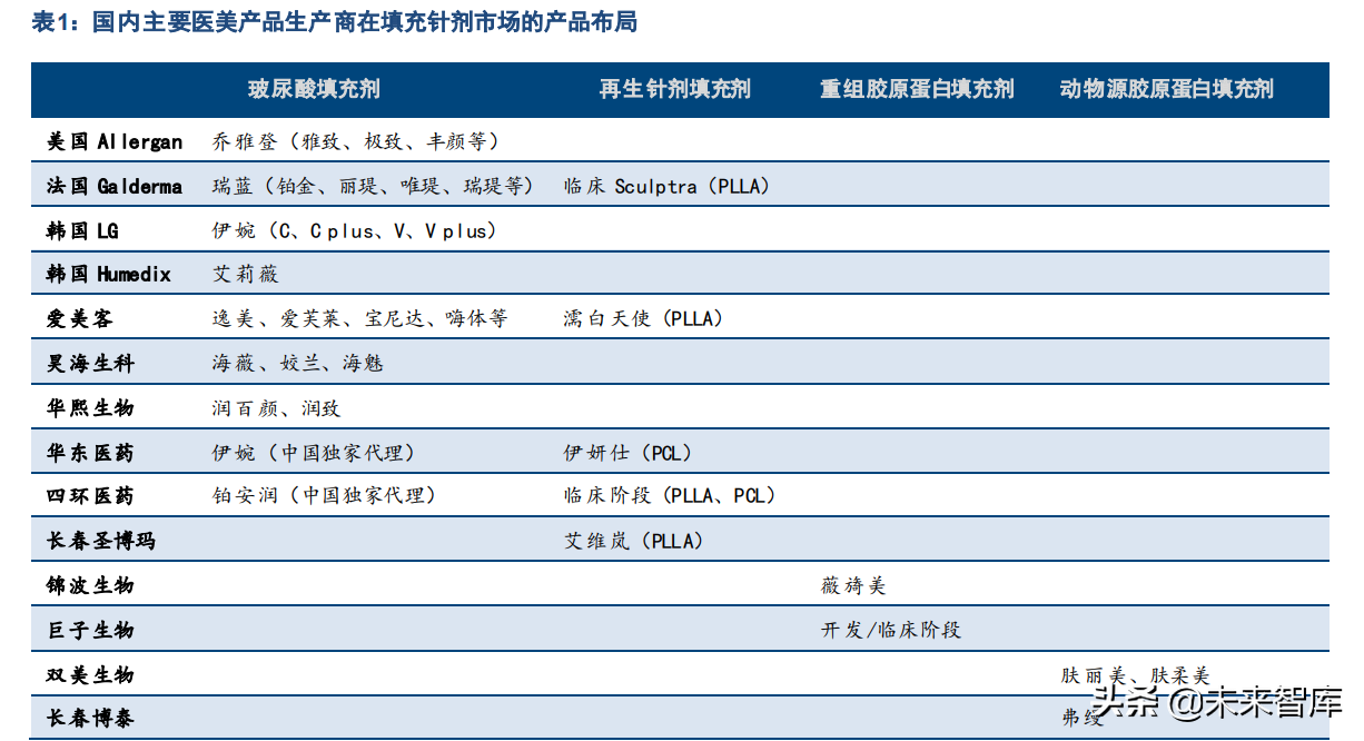 2.1 发展路径→未来格局:玻尿酸为主体,胶原蛋白、再生材料差异化发展
