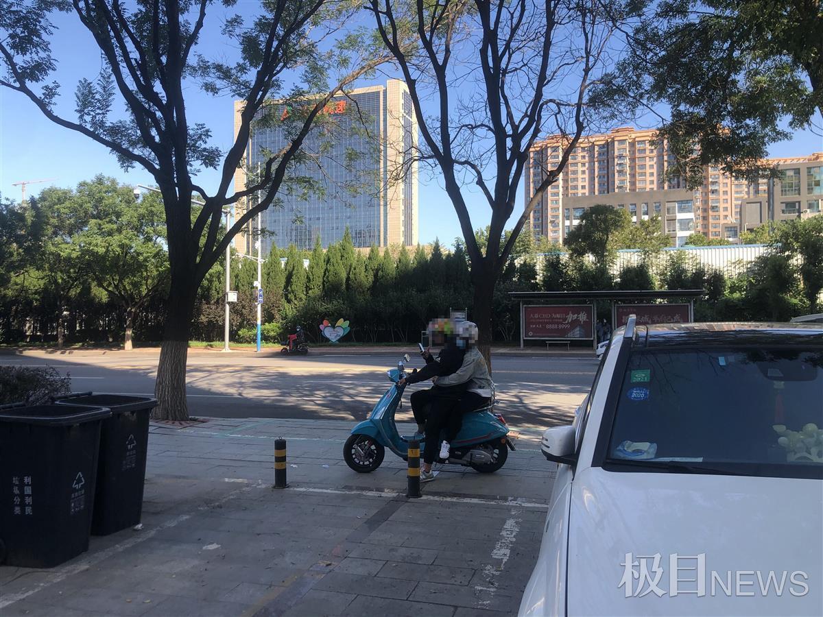 两个年轻人骑着电动车来现场拍照。(极目新闻记者 丁鹏 摄)