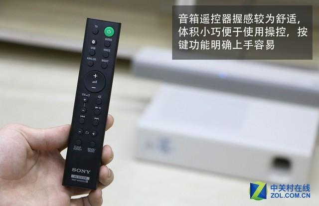索尼HT-MT300还额外标配了遥控器,纤细而精致的遥控器可以轻松地调节声音的大小以及环绕模式。