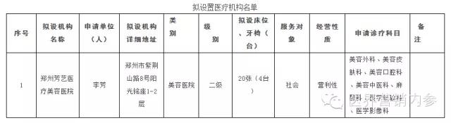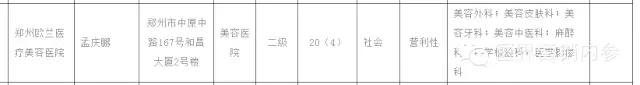 近日,郑州市卫计委旗下的郑州卫生信息网公示:一家名为“郑州欧兰医疗美容医院”的二级美容医院将在郑州市中原中路设立,规模为床位20张(牙椅4台)。