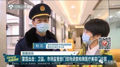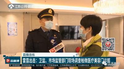 直播曝光后,卫监、市场监管部门雷霆出击,对涉事医美机构进行现场调查,对现场和正在手术的医生、护士的资质进行了查验,江苏广电融媒体新闻中心将持续关注!