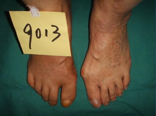 双足均有大脚骨,因为只有右脚大脚骨疼痛严重,所以老太太只做右脚的大脚骨手术,而没有做左脚。