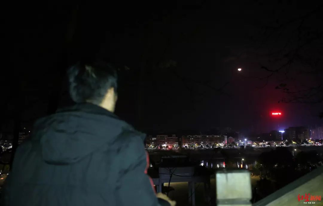 2019年12月17日,在半山腰可以看到建阳区的夜景,章荣高停下来驻足望月。