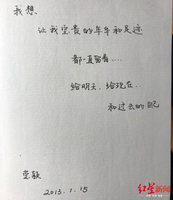 那本日记的扉页写着:我想让我宝贵的年华和足迹,都一直留着……给明天,给现在和过去的自己。life is too short to be ordinary。(生命太短暂,不能平凡。)