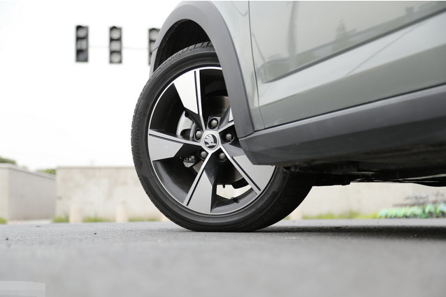 轮胎尺寸上,这台明锐旅行车配备了225/45 R17的五幅亮面轮圈,战斧式的造型特别好看,视觉上有一定的“攻击性”。