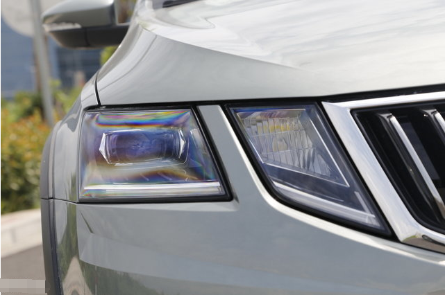 速腾的大灯外形棱角分明,光源方面使用了氙气光源,LED日间行车灯还停留在点状时代,新明锐已经使用灯带式LED了。