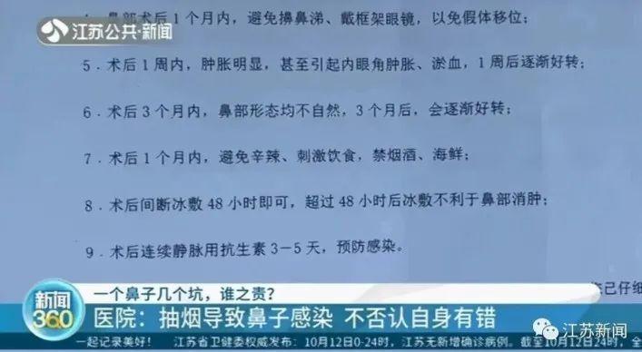关于抽烟,记者注意到,院方术后注意事项中写明禁止抽烟,小陈表示,她抽烟是在发现鼻子感染之后,并非在感染之前 。