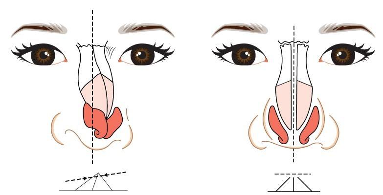 根据歪鼻的分型,结合软骨部或骨部的不同情况,可分别行软骨部整形术,或同时进行骨部、软骨部整形手术。歪鼻整形手术具有一定难度,而且手术后有很大的复发可能,这点求美者一定要加以了解。