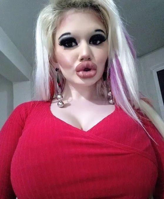 此时的Ivanova,嘴唇厚度几乎是过去的三倍,她却依然认为:还不够厚,不够大…… 于是,前一阵子,Ivanova注射完第20次丰唇针以后,她终于变成了这个样子…… Ivanova丰唇成真人芭比的事迹很快被各国媒体报道,Ivanova从去年起就成了名人,社交媒体上也积累了一票粉丝。 如今她那撅着那张“世界上丰满嘴唇”的照片,更在媒体上传得到处都是。