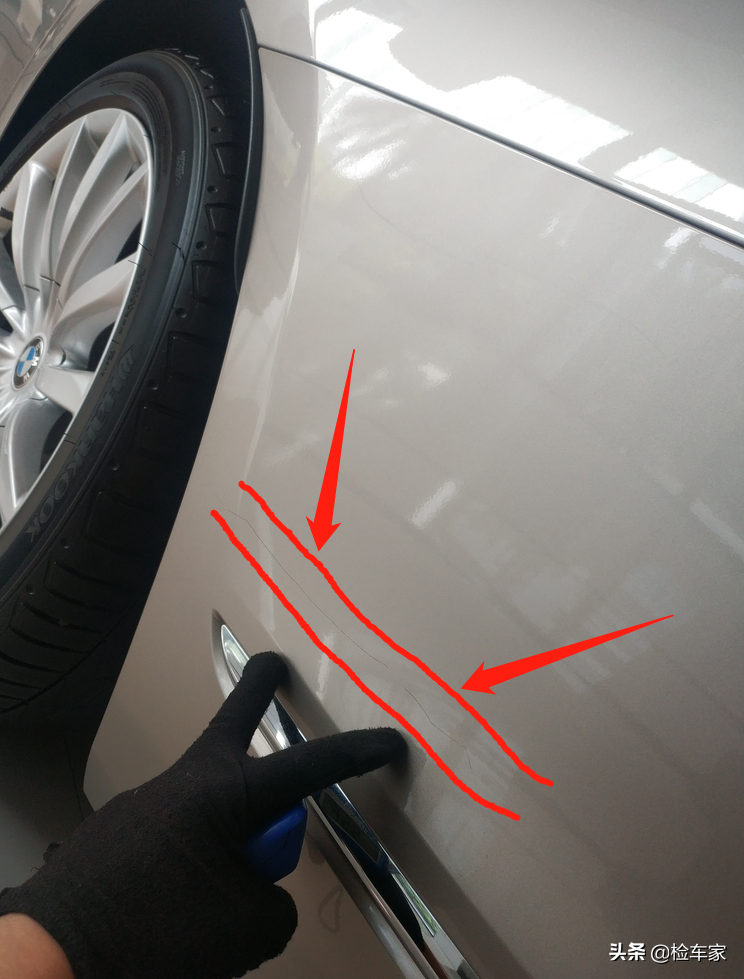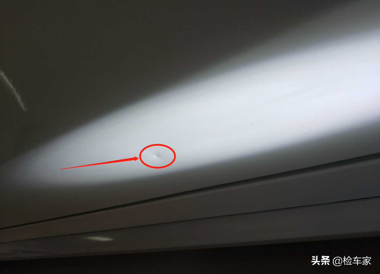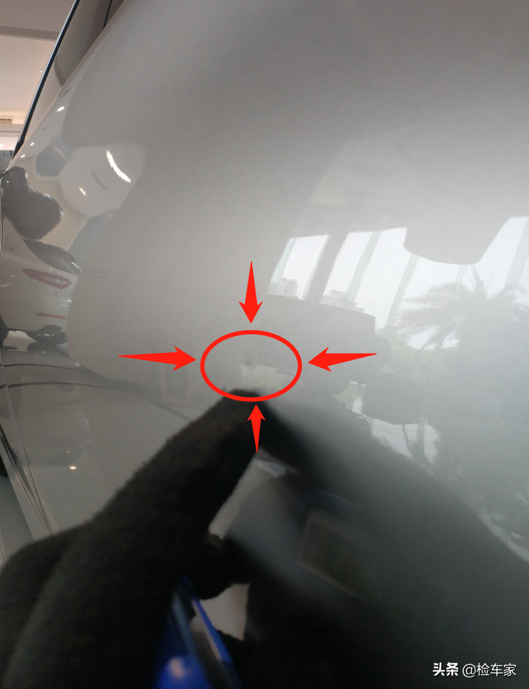 用手电筒或者手机闪光灯从侧面照射漆面,形成不到180度的角度,一下就可以清楚的观察到凹陷划痕还有漆面上的脏点。怎么样,get到了么?