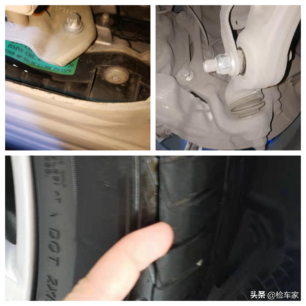 前后悬挂、变速箱、减震器都没有问题,不过右前轮胎割裂的比较严重,应该是右侧事故造成的轮胎受伤,建议马上更换消除隐患!