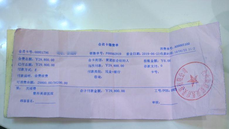 徐女士:他就说交定金签合同,以后你来,消费就有3.5折,原本削骨是8万多,我交29800元就可以做了。