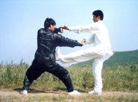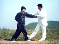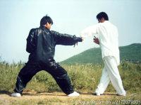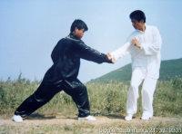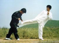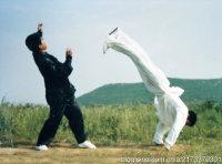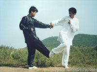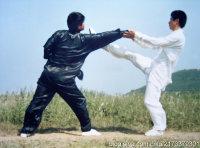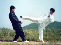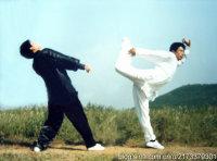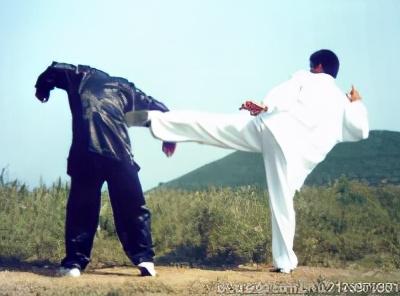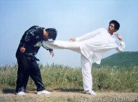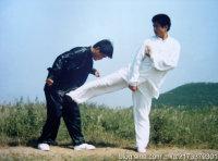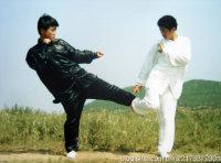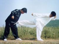 1.“穿梭偷点”一式,应在以手法的掩护下进行,使敌将注意力转移到上盘,以利我之腿击。此腿要求快如穿梭,疾点速收。