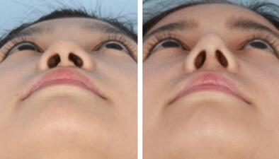 检查鼻翼缩小术后果,好是采用仰视的角度。可以看到鼻翼缩小,而且让鼻孔也更加规整。