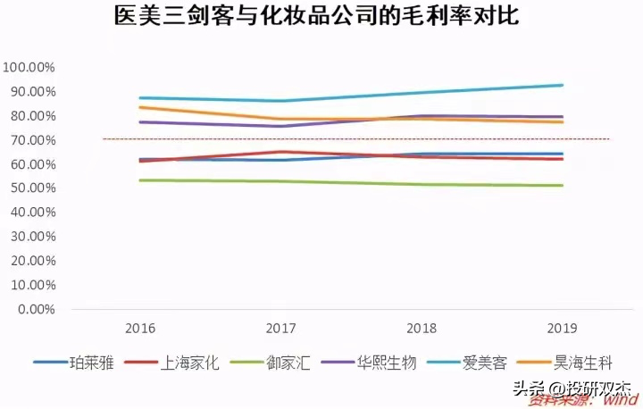 从2016年到现在,医美三剑客的毛利率也一直维持在70%的高位以上。