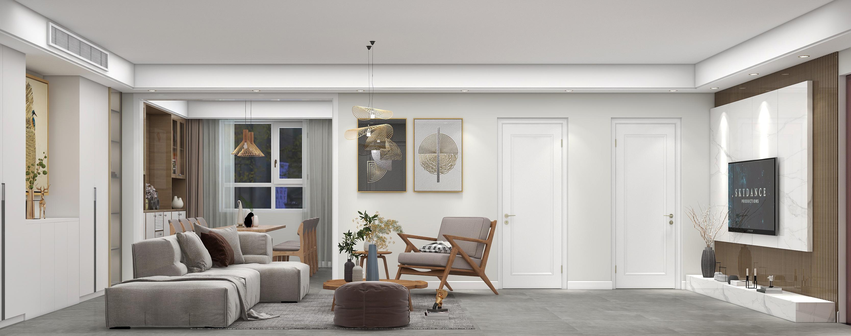 整屋设计理念和业主需求:本方案为145 m'三室两厅的居室设计,业主为一对中年夫妇。此户型是威海市春山华居小区一楼户型,业主要求干净明亮的风格,以北欧风为主,家里亲人会经常来做客,所以客厅,餐厅尤为重要。