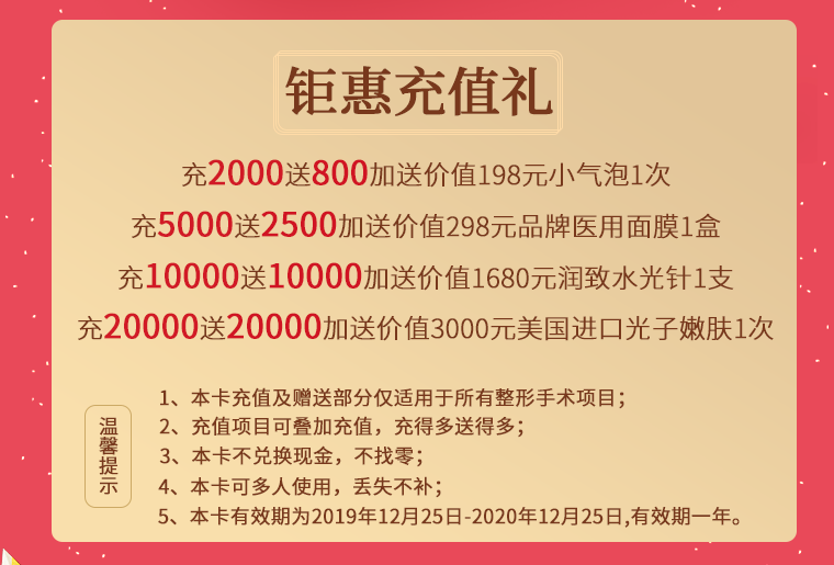 充得多送得多,充值卡适用于各种整形手术,还加大力度赠送小气泡/医美面膜//光子嫩肤,让你成为老家靓的妹。