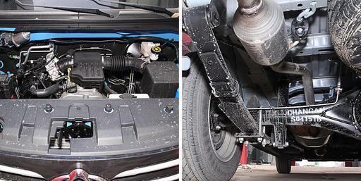 底盘方面,这台车使用的前麦弗逊后钢板弹簧独立悬架,和五菱宏光等车型一样,日常开起来,就是很传统的这一类车型的感觉,因为要照顾拉货和车身的稳定性,悬架被调教的比较硬,日常过弯还有挺到位的支撑,不会那么容易出现翻车的感觉,但是对于路面颠簸的过滤能力,确实是差点事,除非坐满人或者拉满货,能压住悬架,好在NVH控制还不错,日常开不会太吵闹,也就是前置后驱的驱动形式,传动轴有点吵,考虑到拉货的偏向,坐人还是宝骏360前驱的形式好一些,无所谓了。