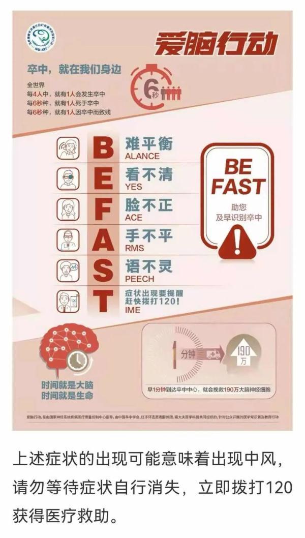 “脑梗死急救关键的一点就是‘快’。”孟明强调,调节需要尽早开通阻塞血管,当出现肢体麻木、口角歪斜、言语困难、视物模糊、意识障碍等症状时应以快的速度送往医院。