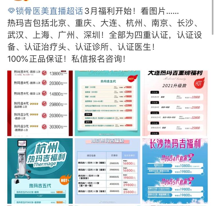 医美KOL,会在微信群里抛出各类团购价的医美项目。/微博截屏