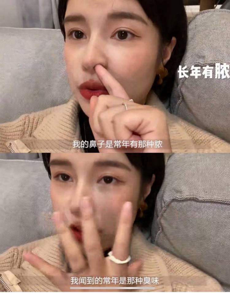 鼻子里常年有脓,奇臭无比,像是肚脐的味道。/小红书博主@张轻轻