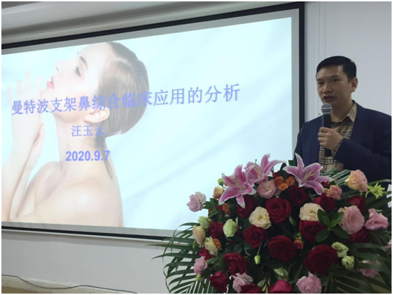 汪玉云教授现场分享《曼特波支架临床应用的分析》,从“S.F.S空间力量平衡原理,鼻中隔保护,人工骨材料及肋软骨区别”等课题展开。