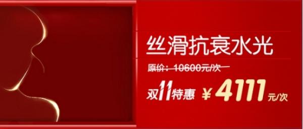 丝滑抗衰水光,这次双十一的优惠力度也是很大,原价:10600元/次 双十一特惠:4111元/次。这个价格摆在这里也没什么可多观望的了,有意向的姐妹可以趁这次机会收了。