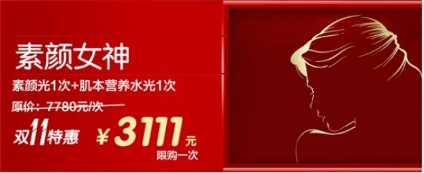 素颜女神(素颜光1次+肌本演绎水光1次)原价:7780元/次 双十一特惠:3111元/次(限购一次),不得不再补充一句美天今年的活动太良心了,把自己好卖的产品都拿出来回馈顾客,便宜的太了。