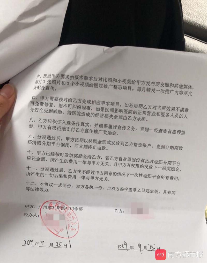 “当时看到医院顾客挺多的。工作人员介绍说,只需要提供肖像权给医院做宣传,以及贷一笔钱用作押金,而且这笔的还款,都由医院每月返还。”嘉嘉说,对方称医院已经经营了十几年,不用担心。她本来是陪舍友去的,听完介绍后有点心动,就签约了。