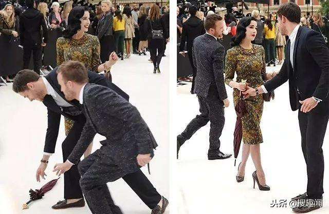 有一次她参加伦敦的Burberry时装秀,不小心掉了一把伞,