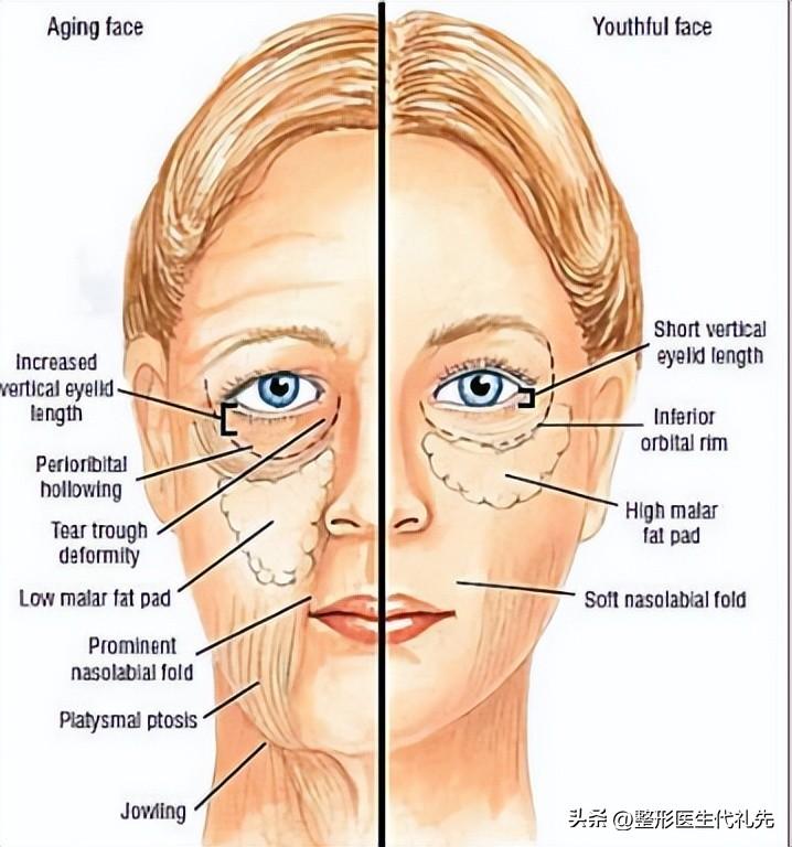 其实从三个方面考虑:1.软组织松弛下垂2面部脂肪萎缩3皮肤质地改变