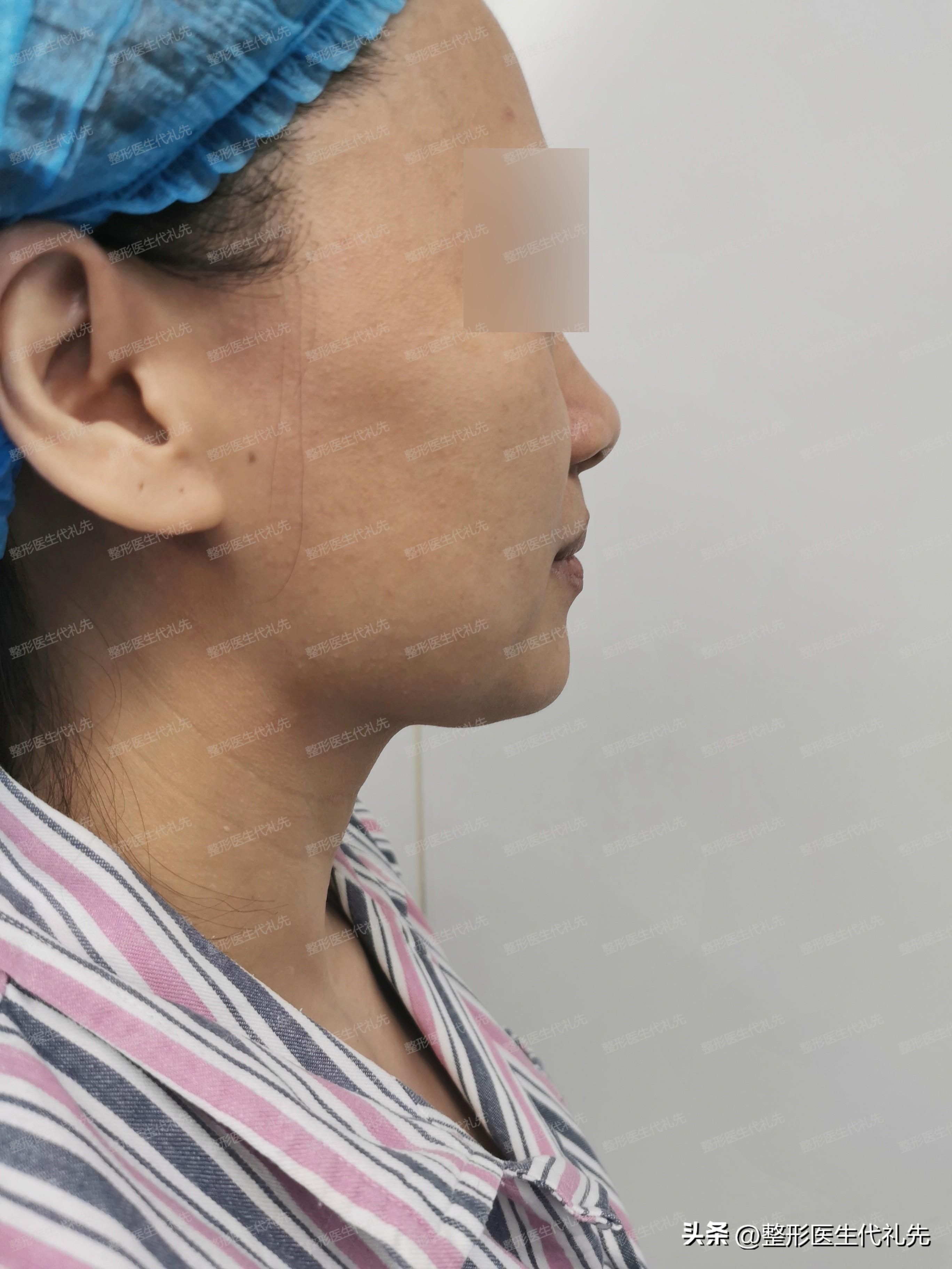 面部松弛没有很多的皮肤松弛和软组织下垂,但是能看出来苹果肌移位,面颊双侧有一定程度的下垂,按照我们的评分标准来看,下垂量达到了80分左右,虽然不需要过多的去除松弛的皮肤,但是筋膜层和韧带的提升是有必要的。