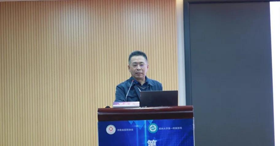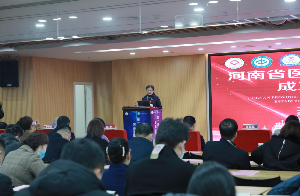 河南省医院协会副秘书长周雯向主委单位刘林嶓教授授牌并颁发证书