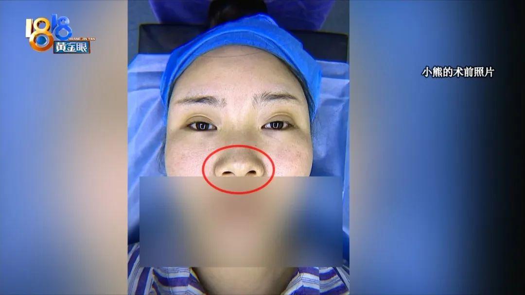 小熊姑娘7月份在杭州一家医疗美容门诊部做了几项整形手术,其中包括了隆鼻。事后去拆线,她发现鼻尖上穿出来一根线头。