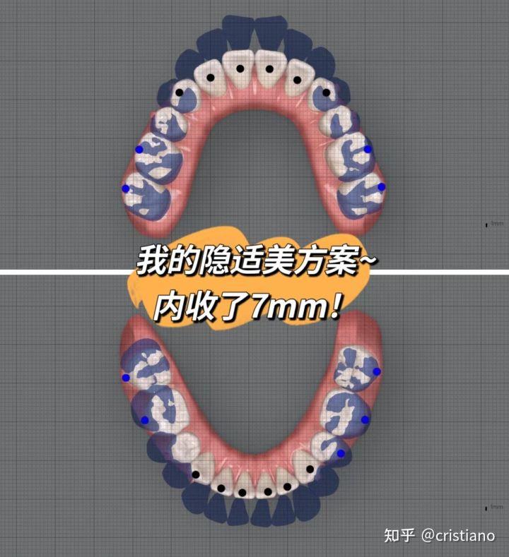 仅通过矫正,我的牙齿内收了7个毫米左右,这是我当时矫正时医生给我设计的方案 ↓