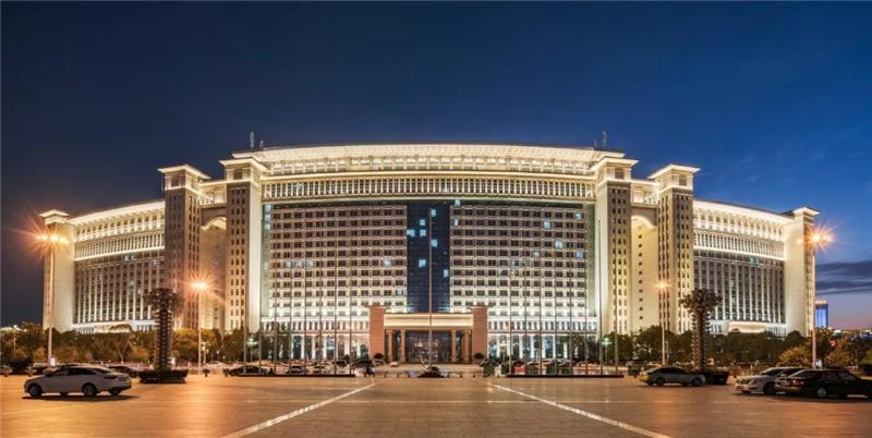 该区域的建筑格局以市政大楼与宜阳大厦为中心,科技、文化、艺术建筑馆环绕其中,背山面水,左右对称,形成强烈的向心力和轴线感。设计师通过量化建筑的亮度指标,严格控制各建筑、各部位的亮度关系,重塑夜间景观秩序,延续并强化区域的向心聚合力与轴线格局,突出了市政大楼、宜阳大厦的核心地位。