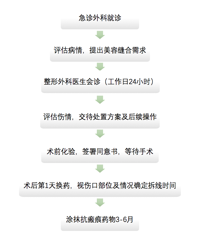 其实只要全身状况稳定,并且对外观有需求,可以向医生提出要求请整形外科医生会诊进行精细的美容缝合。