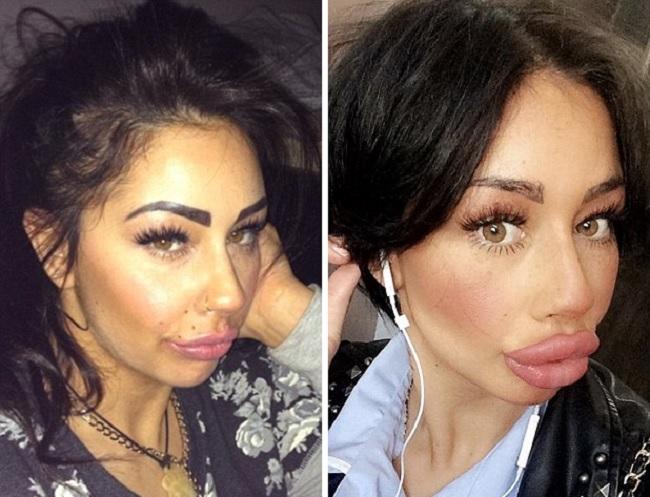 在短短的一年时间里,她将自己的嘴唇增加了5毫升的填充物。然而,她对此还并是满意,她决定进行下一步手术。