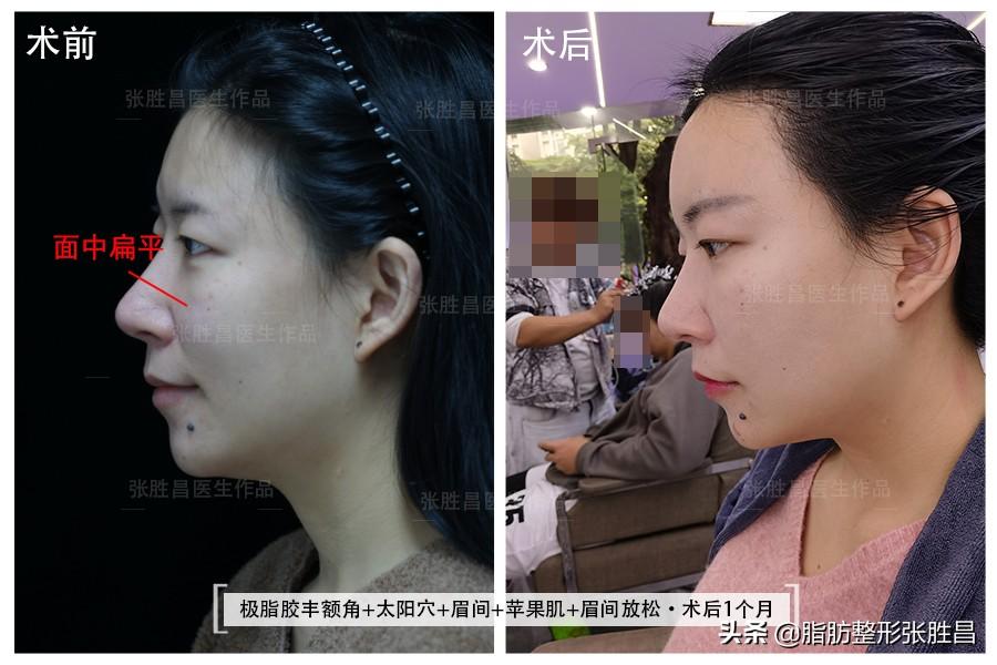 这次做的是极脂胶填充,对比传统脂肪,极脂胶祛除了90%的油滴,质地细腻,可应用于精细填充,并且不水肿,如今术后1个月了,效果怎样呢: