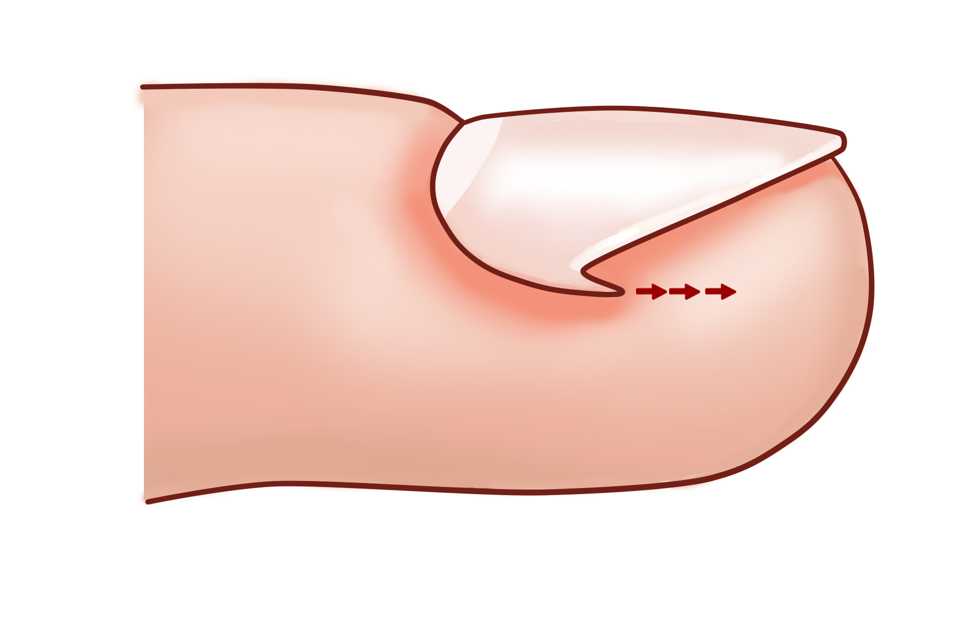 趾甲剪得太短,旁边的软组织因为没有趾甲覆盖就会向上长,结果趾甲长出来后就刺到软组织内,而形成嵌甲。