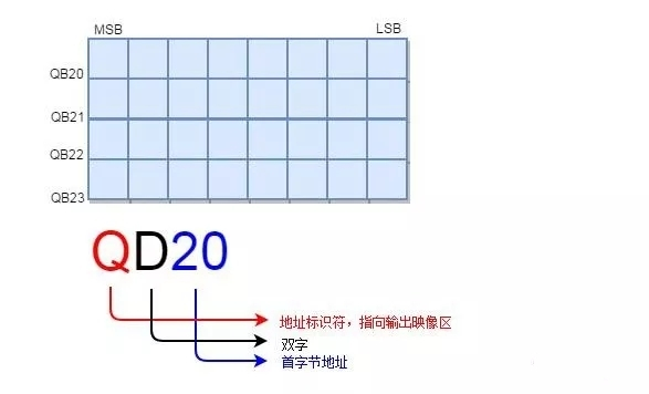 寻址方式:地址标识符+D+首字节地址,其中,"D"代表双字。